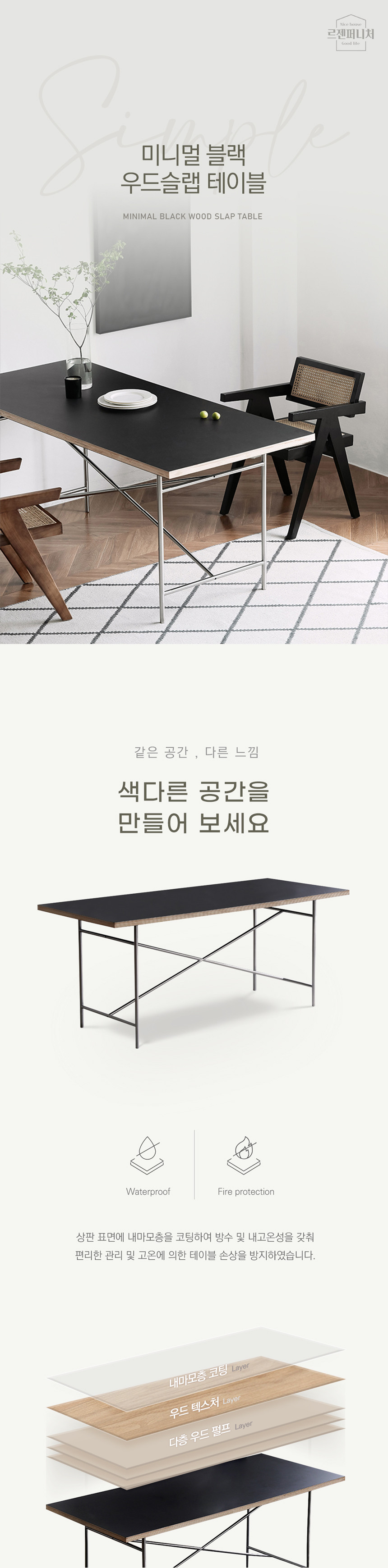 미니멀 블랙 우드슬랩 테이블 책상 다이닝 다용도테이블 UTT-84