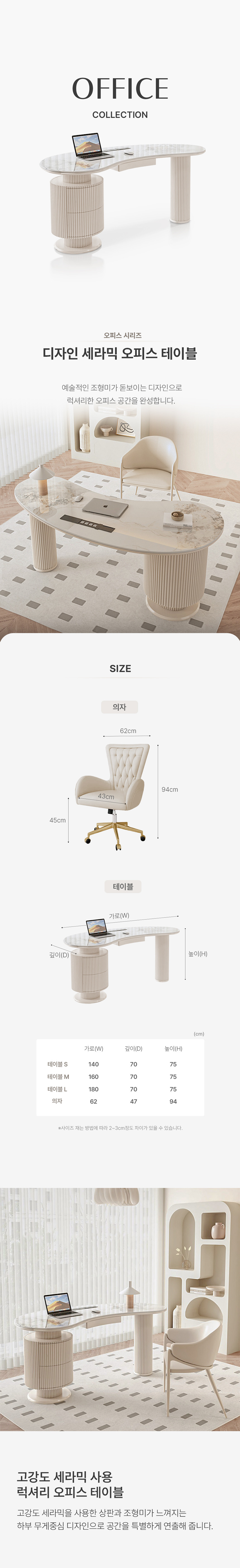 템바보드 비정형 세라믹 중역책상 홈오피스 CEO 서재 테이블 LZT-134