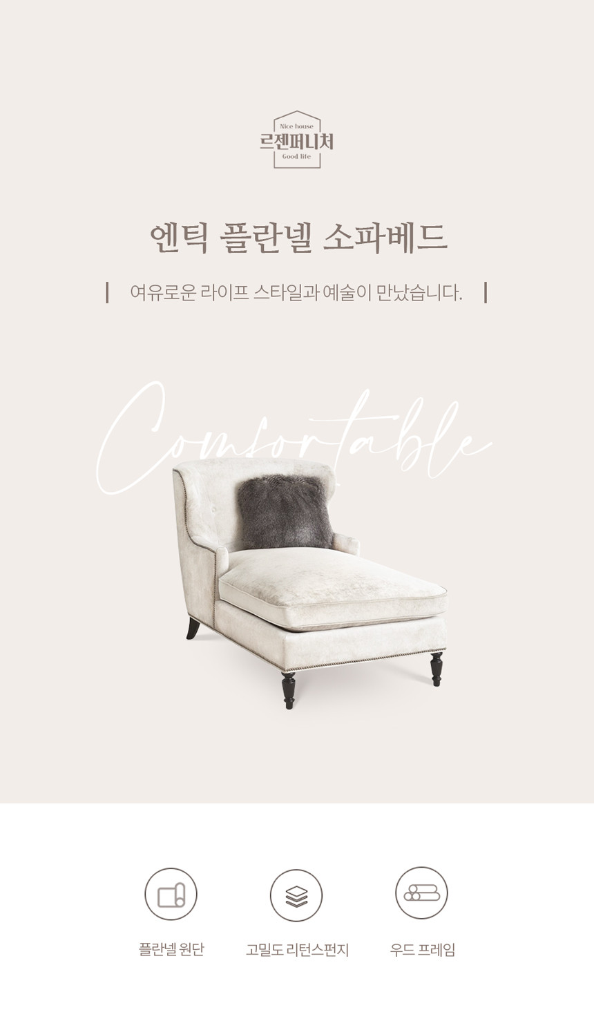 클래식 앤틱 플란넬 1인용 소파베드 침대 UTS-48