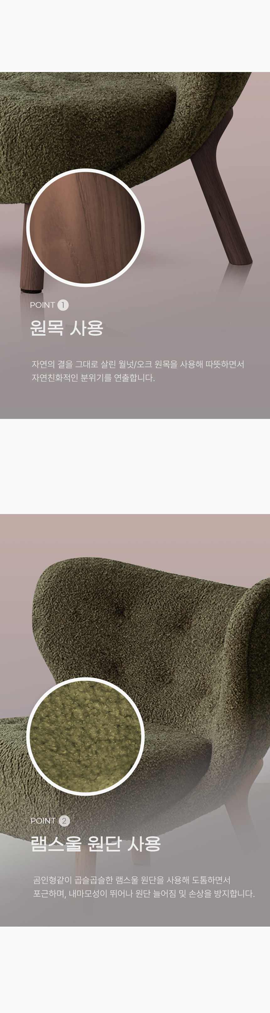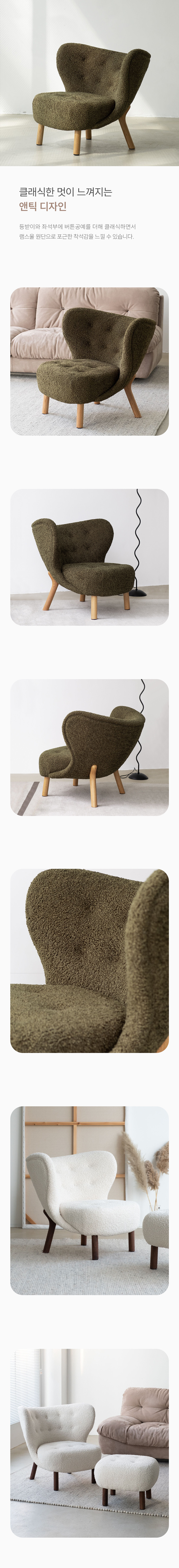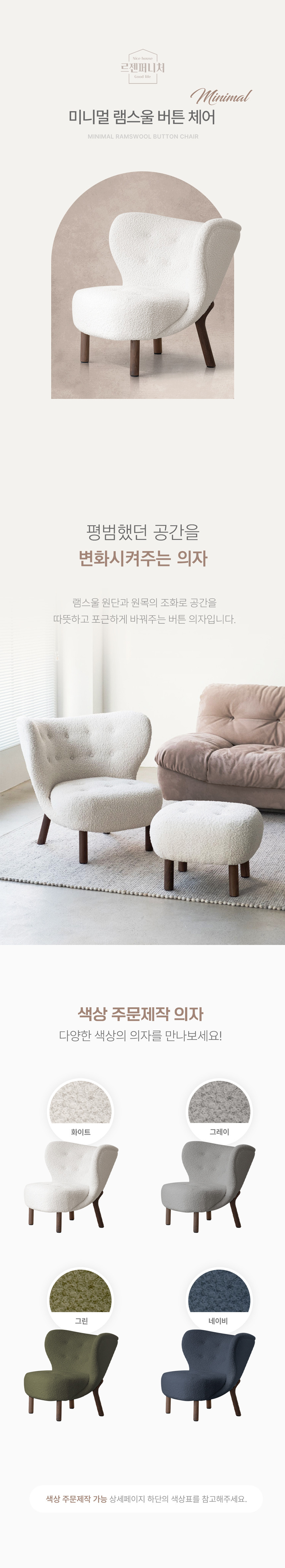 미니멀 램스울 버튼 디자인 1인 체어 의자 LZC-72