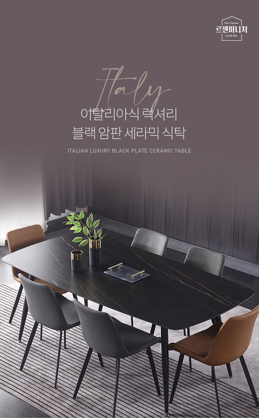 블랙 골드포인트 세라믹 대형 식탁세트 UTT-43
