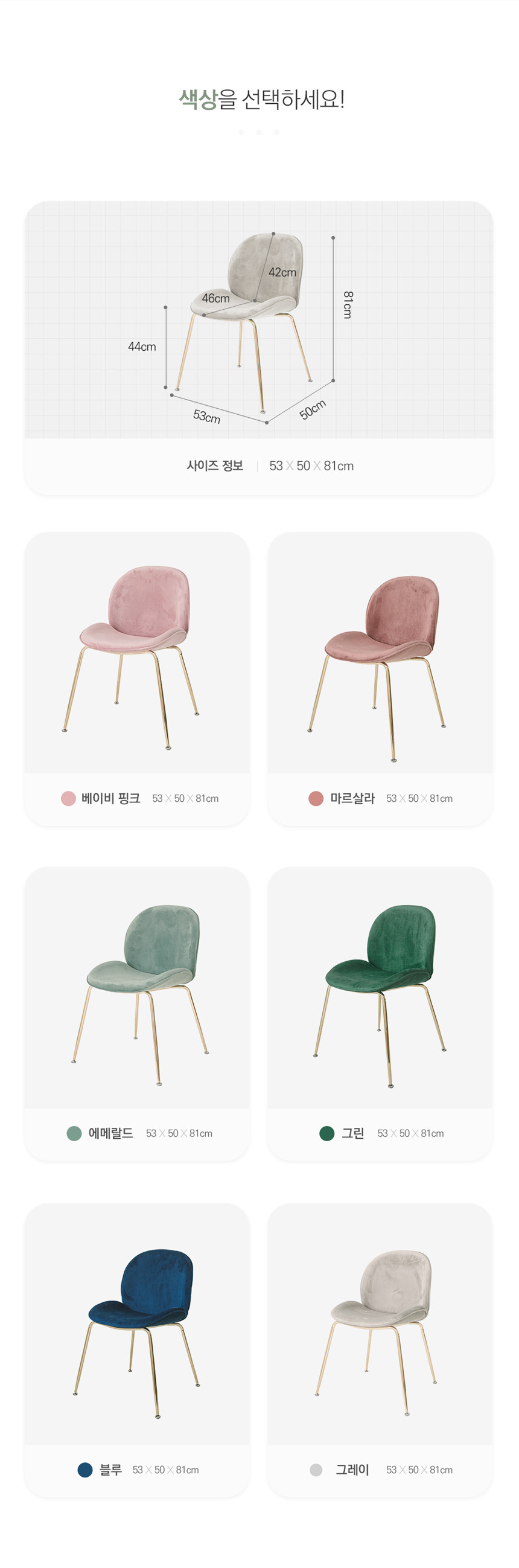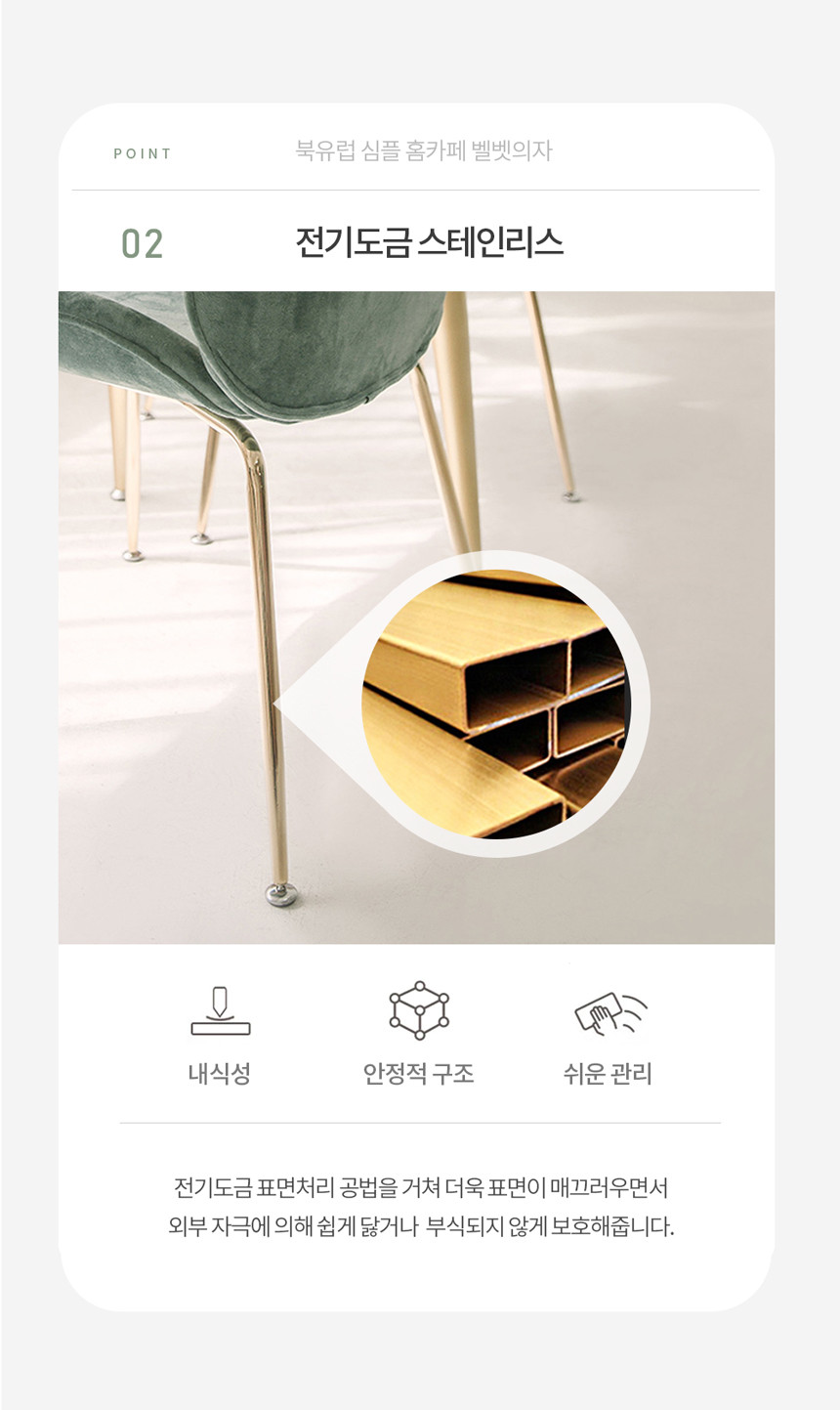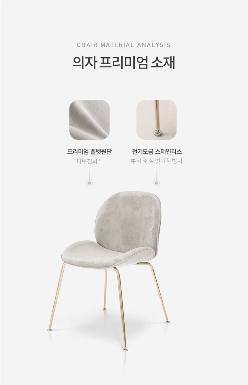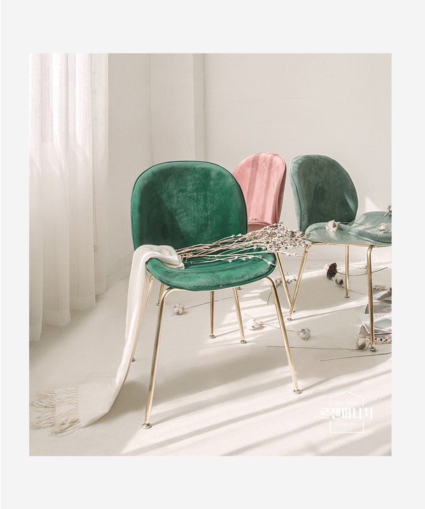 북유럽 심플 홈카페 벨벳 의자 골드프레임 UTC-59