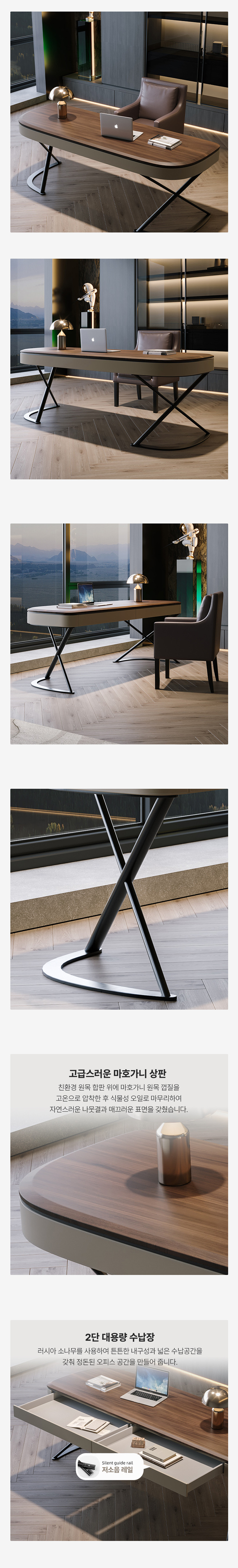 우드 타원형 서재 책상 홈오피스 CEO 대표실 중역책상 LZT-128
