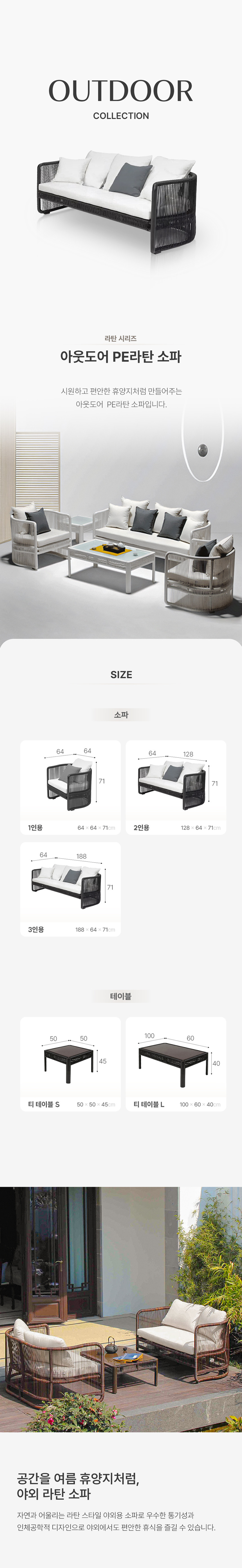 모던 야외 방수소파 카페 테라스 정원 등나무 라탄 소파 LZS-142