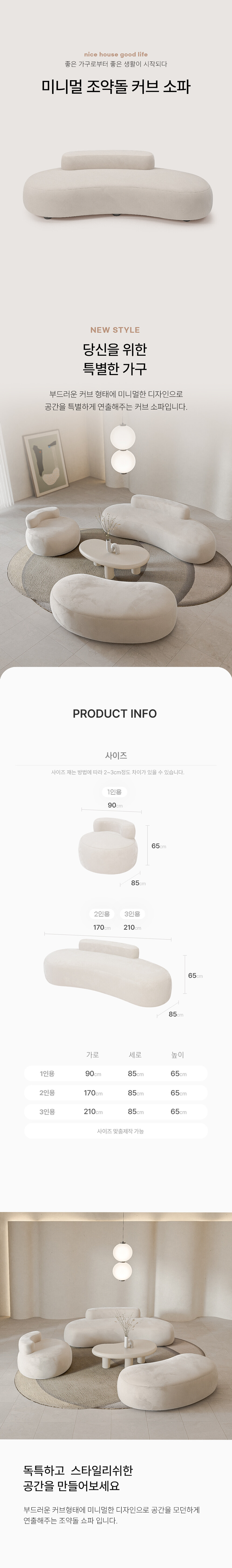 모던 조약돌 커브 소파 카페 라운지 거실 인테리어 쇼파 UTS-120