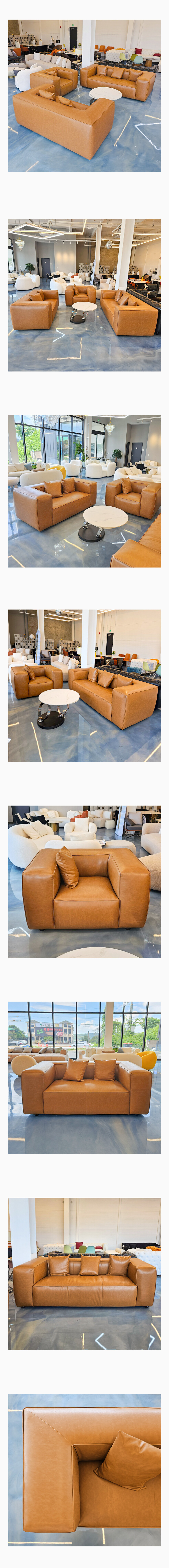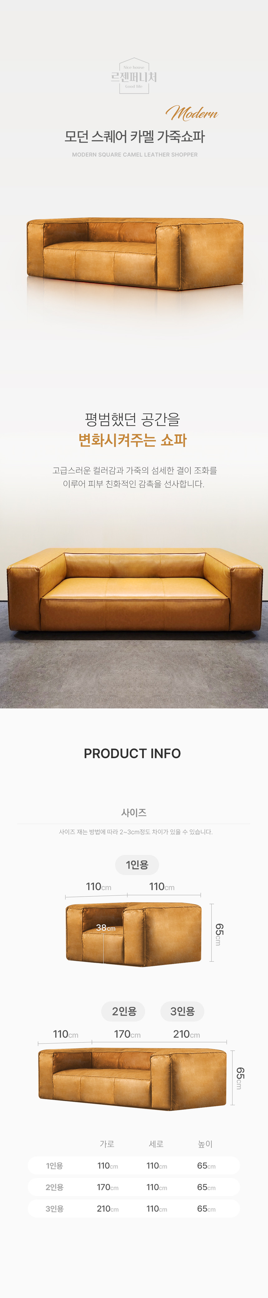 모던 스퀘어 카멜 가죽쇼파 거실 라운지 브라운 가죽 소파 LZS-123
