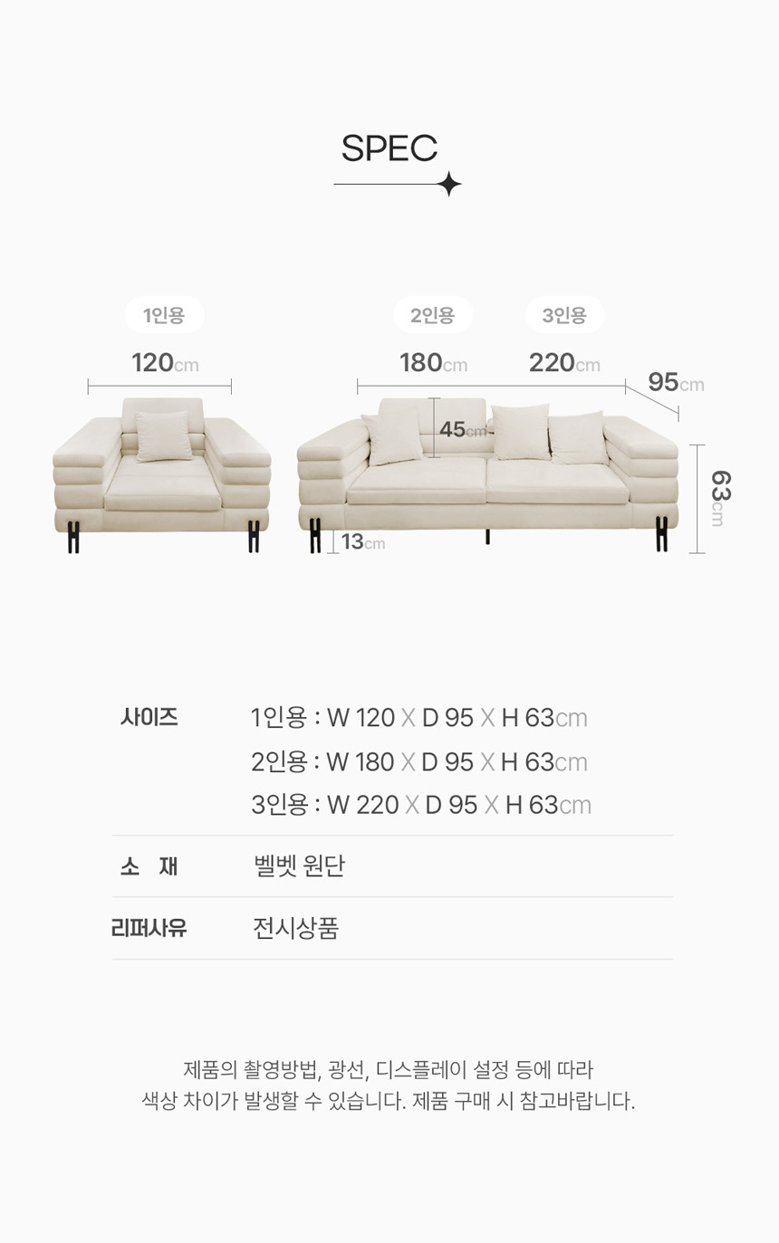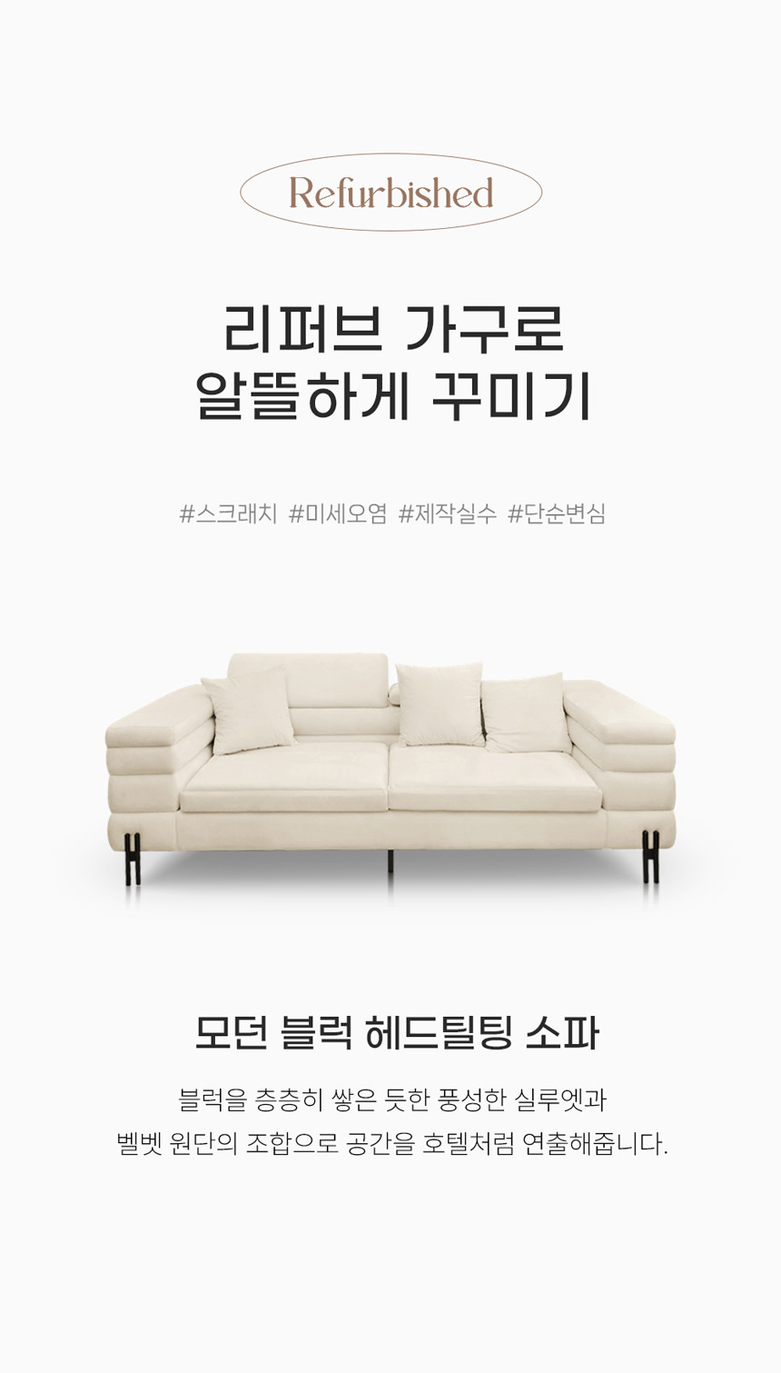 전시상품 모던 블럭 헤드틸팅 소파 벨벳 1인 2인 3인 아이보리 R-30