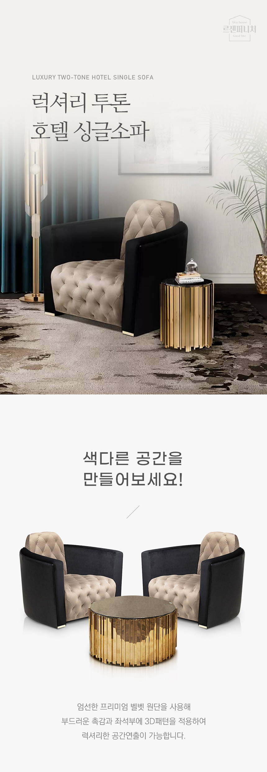 럭셔리 투톤 싱글 소파 호텔 라운지 대기실 1인 소파 LZS-118